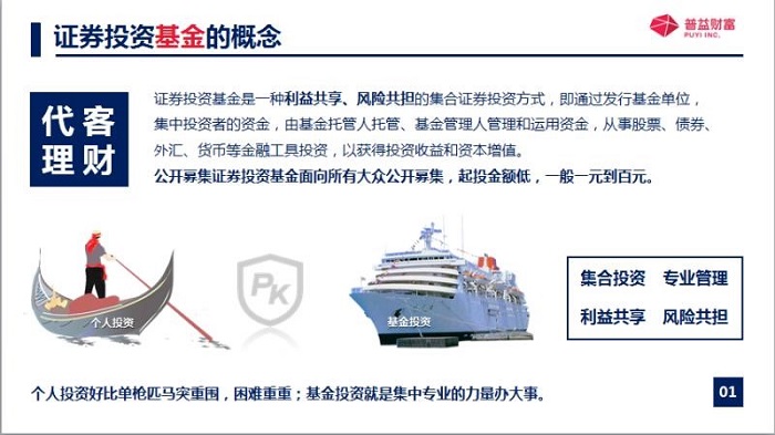 把這些資金呢投資于股票債券外匯貨幣等金融工具的一種集合投資方式,也就是說(shuō)不止投資單一只股票,也不止投資單一只債券,而是投資多只股票或者多只債券的一種集合投資方式,極大地分散的風(fēng)險(xiǎn),因?yàn)樵蹅兌贾离u蛋不能放在同一個(gè)籃子里面,并且呢,公募基金是面向所有大眾公開(kāi)募集的,起投金額是比較低的,一元起投呀,百萬(wàn)元起投呀,千元起投。這對(duì)于很多投資者來(lái)說(shuō)呢,都是可以接觸的到的,那如果說(shuō)拿個(gè)人投資跟基金投資進(jìn)行比較的話,就像在海里面航行一樣,個(gè)人投資就像一個(gè)孤身備戰(zhàn)的小姑船一樣,那基金投資,因?yàn)樗澈笥幸徽麄€(gè)團(tuán)隊(duì)進(jìn)行運(yùn)作,那他的專業(yè)非常強(qiáng),所以呢,它就是集中專業(yè)的力量辦大事。
