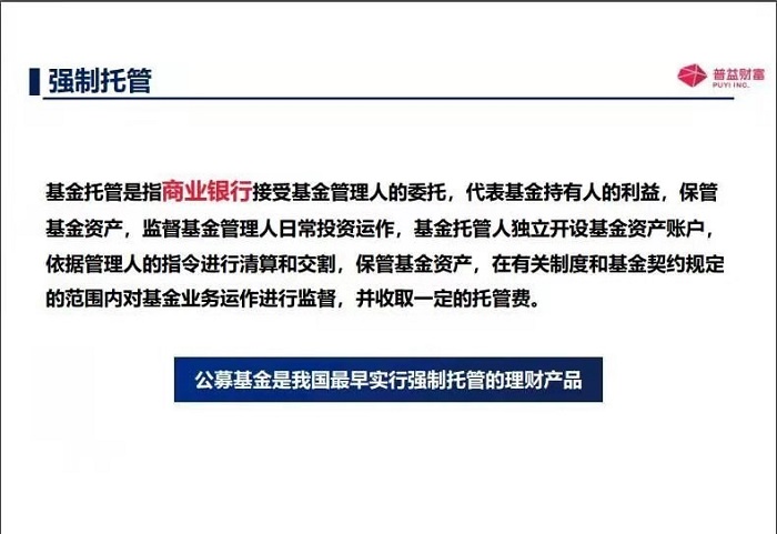 那另外一個(gè)呢,基金投資人就是咱們普通老百姓,也是基金投資人呢,還有機(jī)構(gòu)投資者,那另外一個(gè)就是基金托管人,就是來(lái)保管著咱們資金的安全的就是基金托管人,第一班是有商業(yè)銀行或者證券公司,他們還必須得有托管的資質(zhì),當(dāng)然了,還有基金代銷機(jī)構(gòu),也就是去銷售基金的,比如說(shuō)一些商業(yè)銀行呀,證券公司呀,期貨公司呀,還有一些第三方的獨(dú)立的基金代銷機(jī)構(gòu),像咱們的普益基金就是基金代銷機(jī)構(gòu)。