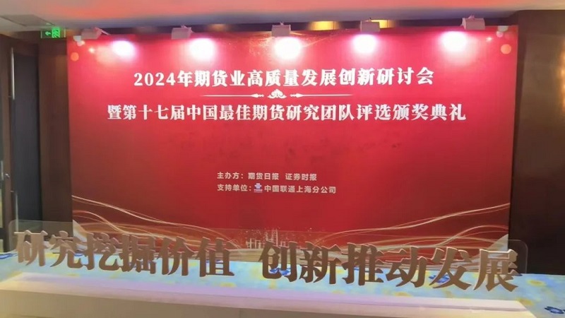 2024年11月27日上午,期貨日報(bào)社聯(lián)合證券時報(bào)社共同主辦的“2024年期貨業(yè)高質(zhì)量發(fā)展創(chuàng)新研討會暨第十七屆中國最佳期貨研究團(tuán)隊(duì)評選頒獎典禮”在南京舉行。
